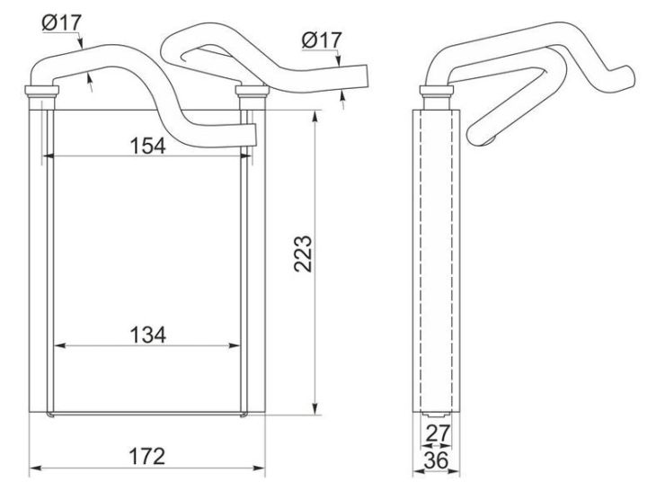 Радиатор отопителя /TI-GUAR для TOYOTA VITZ, PLATZ, PROBOX, FUNCARGO 1999-2005/БЕЗ ТРУБОК; TG-RIH0005 NDT2047 8710752010 8710752050
