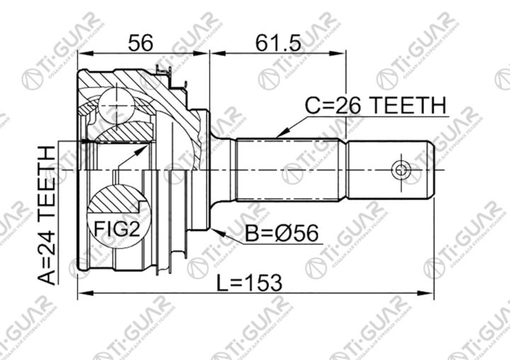 ШРУС наружный /TI-GUAR для Toyota Celica 1998-2000 Carina Corona Curren Camry 1998- Corolla 2000- RAV4; 24*56*26; TG-9509; (TOE009A CO7509A LGTO25A48) 4341012070 4341020720 4342020390