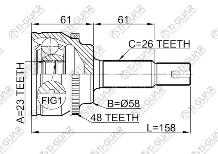 ШРУС наружный /TI-GUAR для TOYOTA COROLLA, EUROPA /ZZE120L, ZZ120R, 4ZZFE, ZZ121L, ZZ121R, 3ZZFE /23*58*26; TG-95120Z48; 0110ZZE120A48 329153A 4341002240 4342002270 CO7562A JCT0142A TO117A48